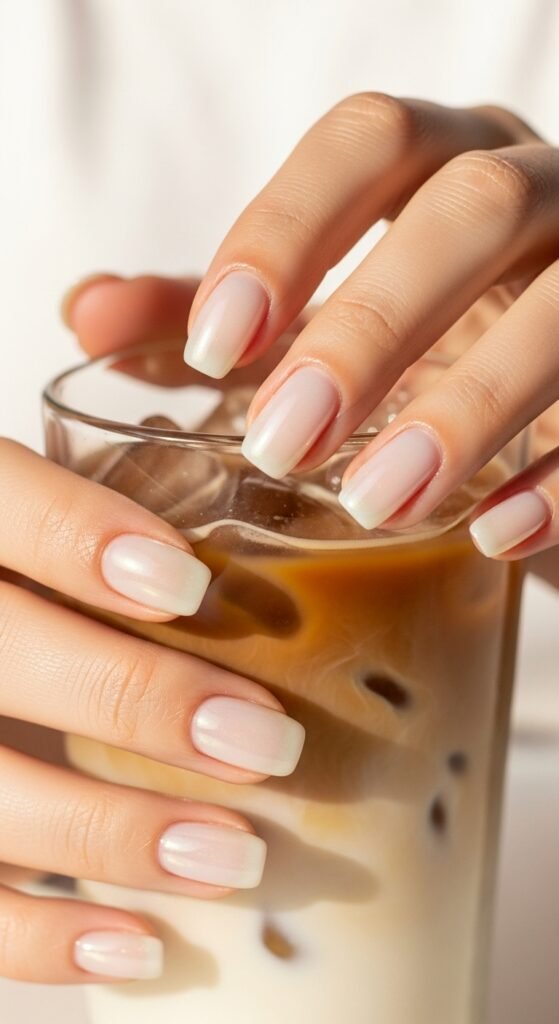 18. Sheer “Glazed Donut” Nails