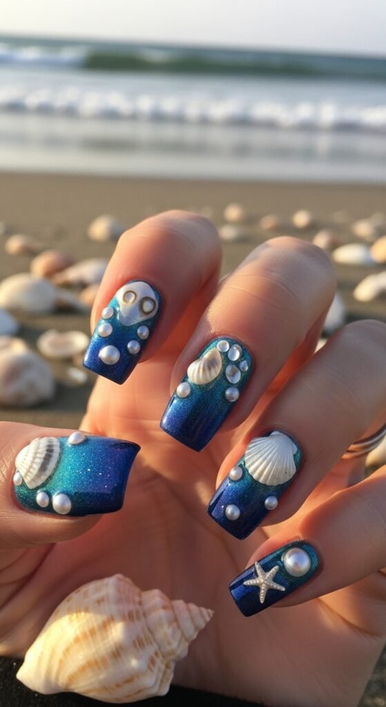 Pro tip: Pair with pearls or tiny rhinestones for extra “under the sea” energy.
