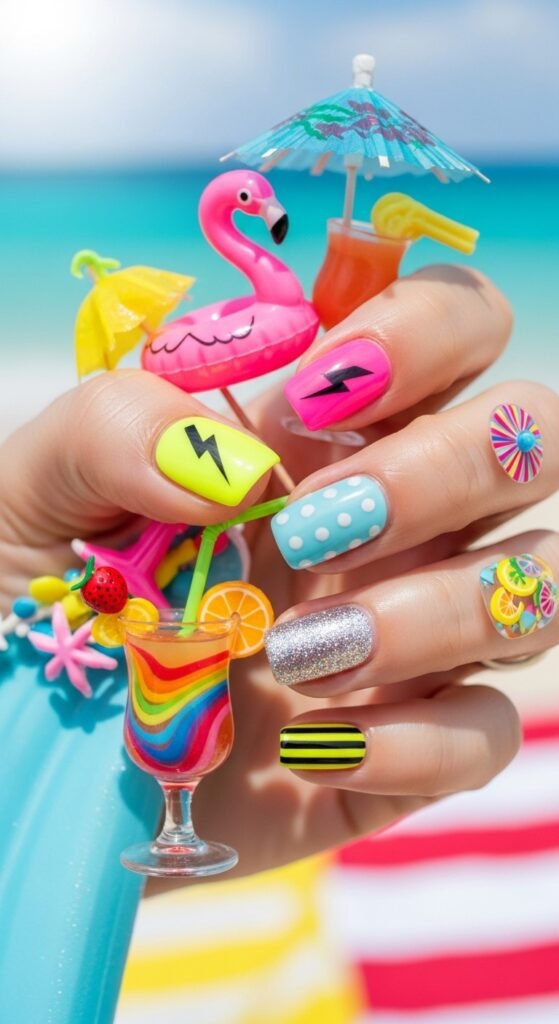 1. Neon Pop Nails