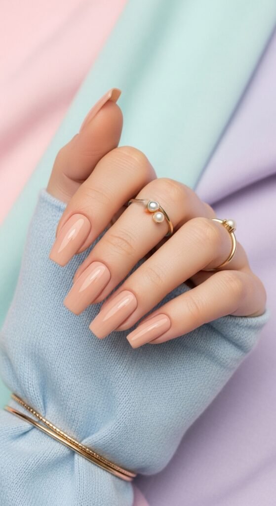 Classic nude, but with shimmer. It gives your nails that glowing, sunlit finish without being loud.
