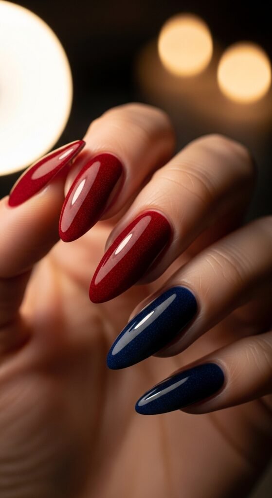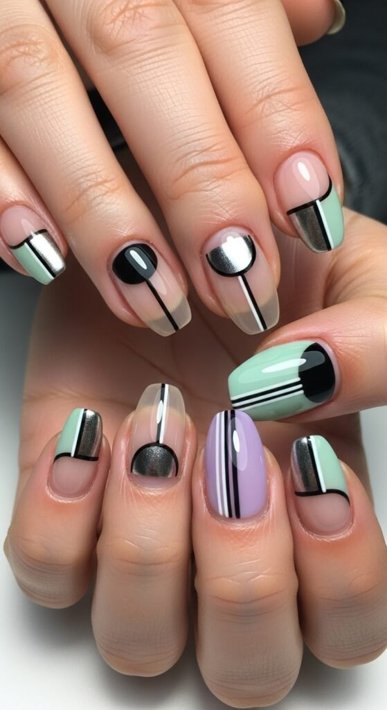 Each nail has a different color or design. One might be neon, one pastel, one with glitter. Sounds chaotic, but when done right, it’s artsy and cool.
