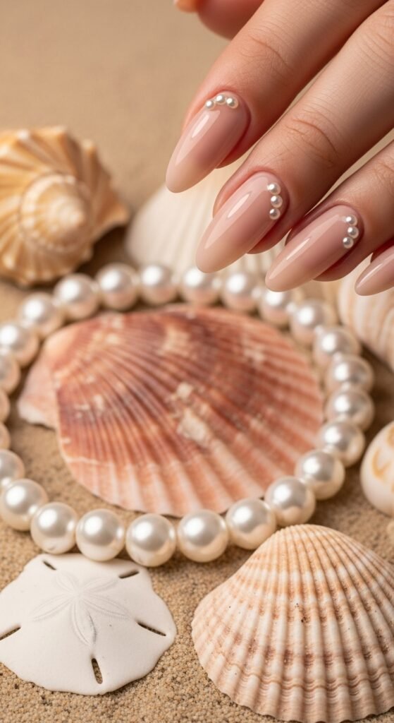 Tiny pearls glued onto nails? Elegant and beachy at the same time. It’s like jewelry, but for your fingertips.
